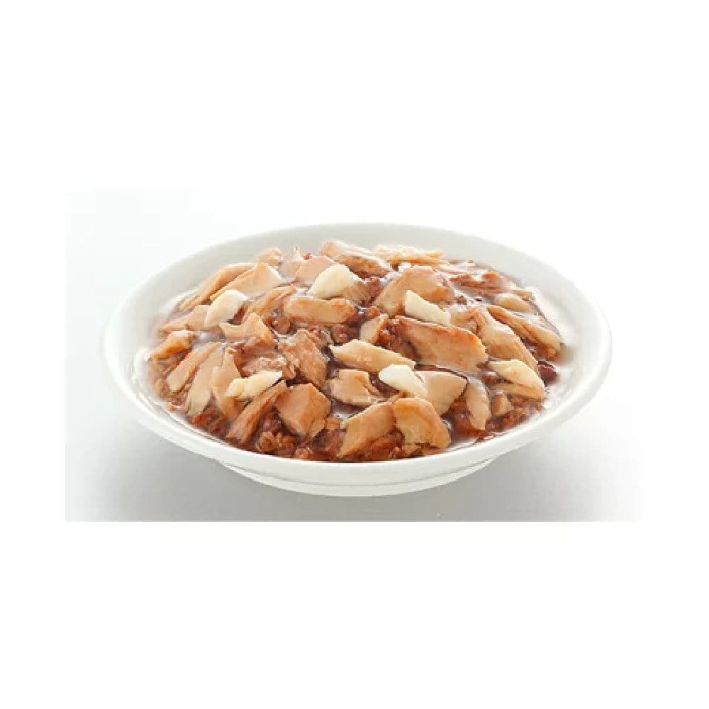 魚類(かつお、白身魚、たい、まぐろエキス等)、植物性油脂、ビタミン類(A、B1、B2、B6、B12、E、K、コリン、ナイアシン、パントテン酸、ビオチン、葉酸)、ミネラル類(Ca、Cu、Fe、I、Mg、Mn、Zn)、タウリン、増粘多糖類、調味料、EDTA-Ca・Na、EDTA-Na
