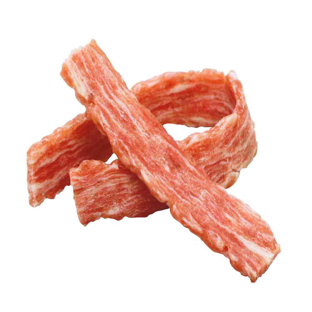 見た目が本格的な、ビーフベーコン。 低脂肪な赤身牛肉を使い、食べやすいベーコン状に仕上げました。
