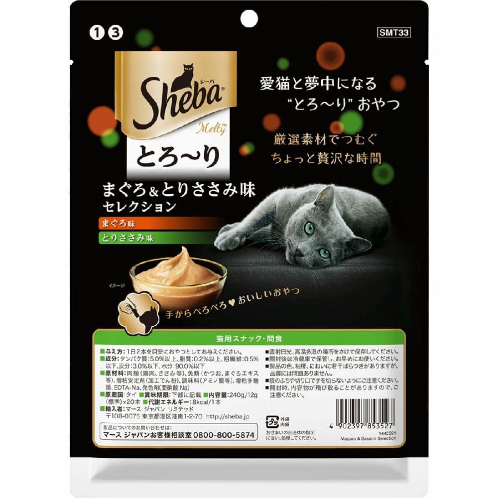 猫ちゃんが手からでも舐めやすいとろ‐りおやつ。まぐろととりささみ味を楽しめるセレクションの大容量。
