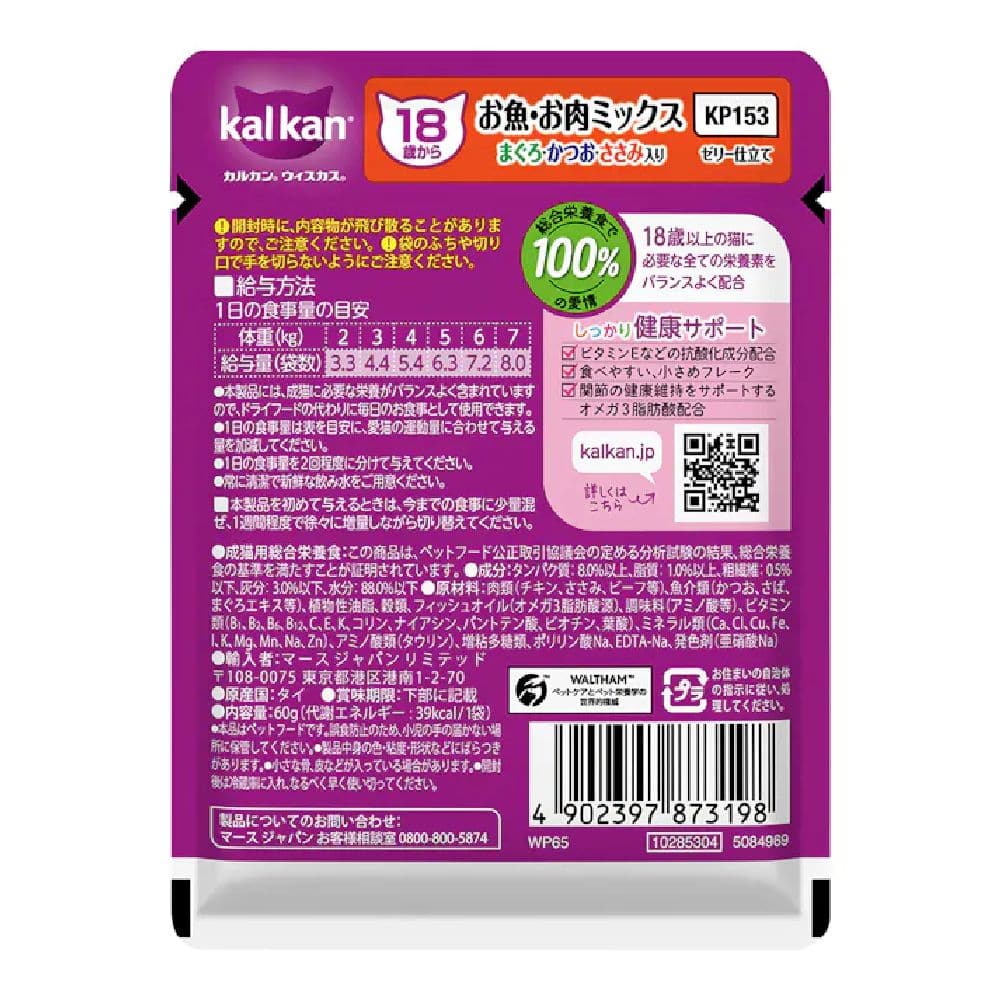 肉類(チキン、ささみ、ビーフ等)、魚介類(かつお、さば、まぐろエキス等)、植物性油脂、穀類、フィッシュオイル(オメガ3脂肪酸源)、調味料(アミノ酸等)、ビタミン類(B1、B2、B6、B12、C、E、K、コリン、ナイアシン、パントテン酸、ビオチン、葉酸)、ミネラル類(Ca、Cl、Cu、Fe、I、K、Mg、Mn、Na、Zn)、アミノ酸類(タウリン)、増粘多糖類、ポリリン酸Na、EDTA-Na、発色剤(亜硝酸Na)