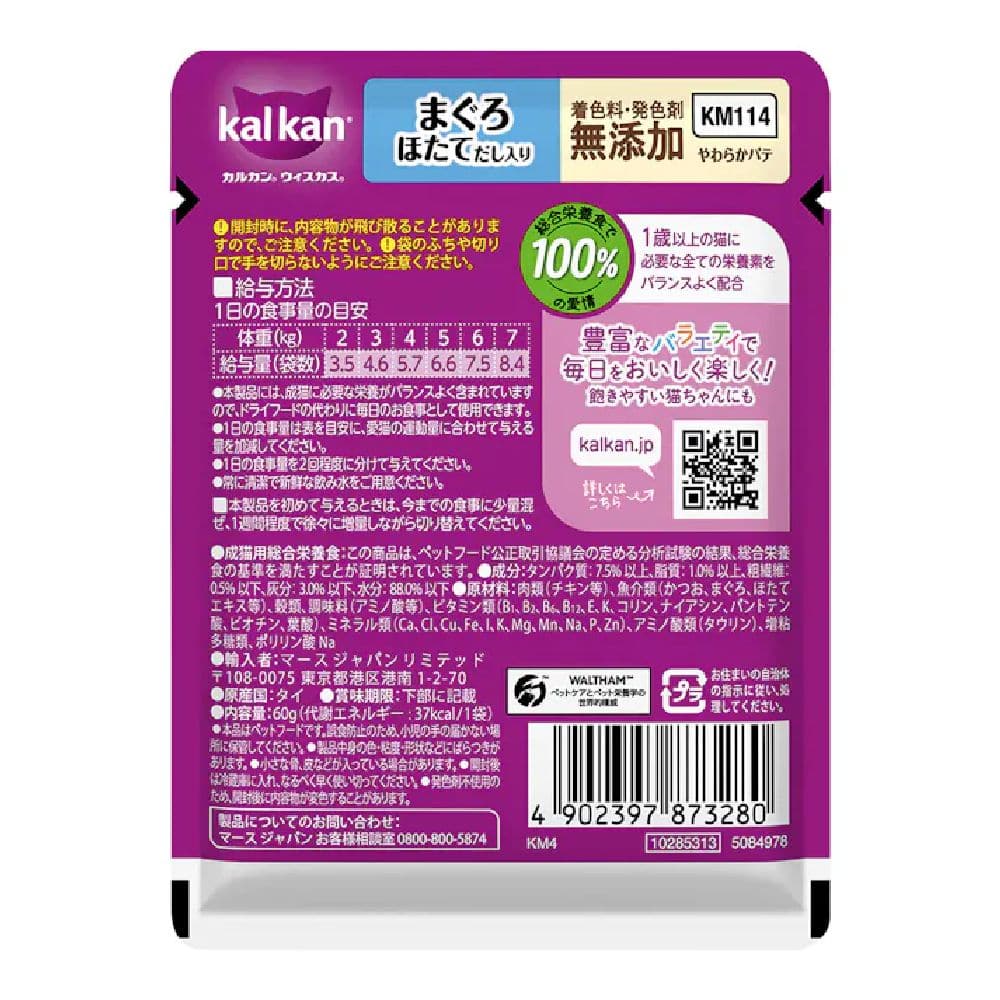 肉類(チキン等)、魚介類(かつお、まぐろ、ほたてエキス等)、穀類、調味料(アミノ酸等)、ビタミン類(B1、B2、B6、B12、E、K、コリン、ナイアシン、パントテン酸、ビオチン、葉酸)、ミネラル類(Ca、Cl、Cu、Fe、I、K、Mg、Mn、Na、P、Zn)、アミノ酸類(タウリン)、増粘多糖類、ポリリン酸Na