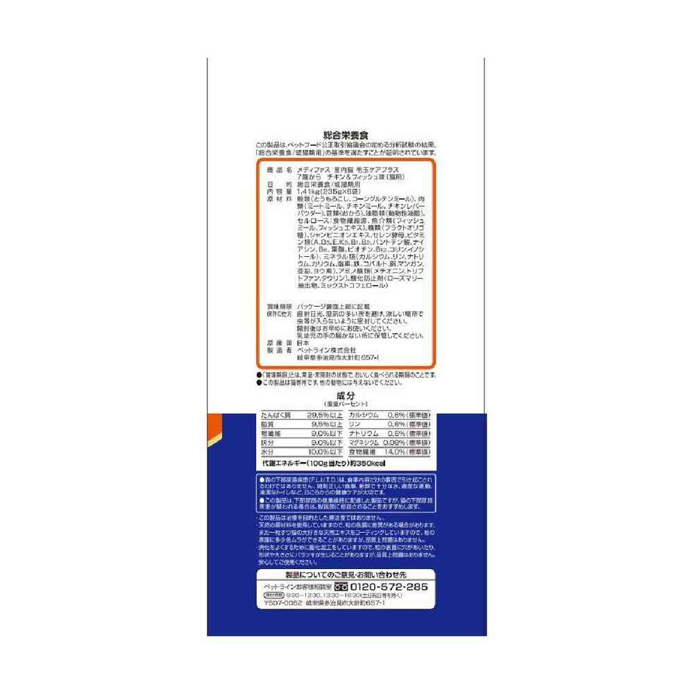 マグネシウム由来とカルシウム由来の結石に配慮。毛玉排出のサポートにセルロースをプラス。カロリー控えめ(7歳から比約5%カット)。◎尿pH設計値6.2~6.5◎マグネシウム含有量0.08%(標準値)