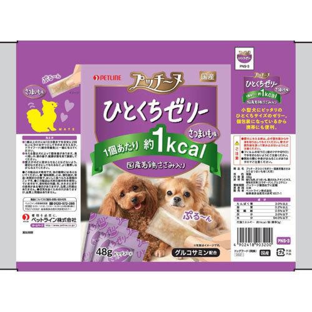 ペット、ペットフード、犬、トリーツ、さつまいも味、ひとくちゼリー、1個約1kcal、ささみ入り、さつまいも味