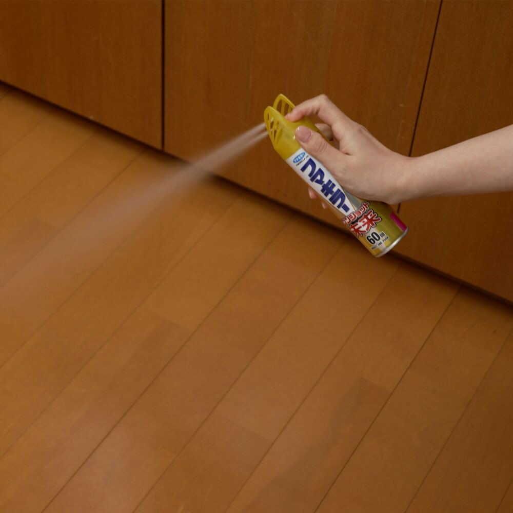●初めて使用する際は充分な量が出ないので、2回カラ押ししてから使用してください。 ●1本で約60回噴射できます。 ●ボタンを1回押すと必要量が噴射されます。 ハエ成虫および蚊成虫に対しては6~12畳につき上方に向けて1回噴射するか、または直接噴射する。 ゴキブリ、ノミ、トコジラミ、イエダニ、およびマダニに対しては直接噴射する。 <してはいけないこと> ●人体に向かって噴射しない。また、噴射気体を直接吸入しない。 <相談すること> ●万一身体に異常を感じた時は、使用を中止し本品がピレスロイド系殺虫剤であることを医師に告げ、診療を受ける。 <その他の注意> ●定められた使用方法を必ず守る。 ●皮膚に付かないよう注意し、付いた場合は直ちに石けんでよく洗う。 ●眼に入らないよう注意し、眼に入った場合は直ちによく水洗いする。 ●アレルギー症状やかぶれ等を起こしやすい体質の人、喘息の症状がある人、妊婦等は薬剤に触れたり、吸入しないよう注意する。 ●閉め切った部屋や狭い部屋で使用する場合は時々換気する。 ●小鳥等のペット類や植物にかからないようにする。観賞魚および水棲生物等の水槽や昆虫の飼育カゴがある部屋では使用しない。 ●飲食物、食器、子供のおもちゃ、飼料等にかからないようにする。 ●しみ・変色の原因となるので、電気製品、プラスチック、白木・桐の家具、仏壇、カーテン、精密機器、自動車、ふすま、障子等に直接かからないよう注意する。 ●噴射できなくなることがあるので、逆さまや真横にして使用しない。 ●噴射量が少なくなったら使用をやめる。充分な効果が得られない場合があります。 ●噴射後の床等はすべりやすくなるので充分注意する。 ●換気をする。