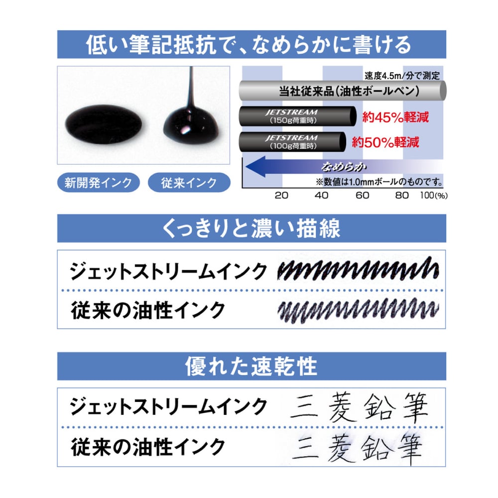 クセになる、なめらかな書き味。超・低摩擦ジェットストリームインク搭載、極めてなめらかな書き味を実現しました。