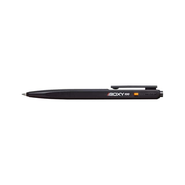 ロングセラーのノック式ボールペンBOXY。耐久性の高いステンレスチップのノック式クリップ付きボールペンです。