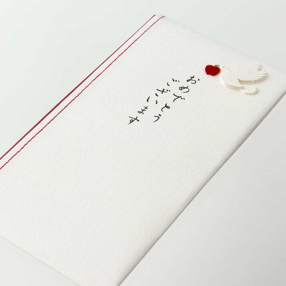 用途に合わせてお使いいただける金封です。たとう型の封筒に赤糸のステッチが入っています。