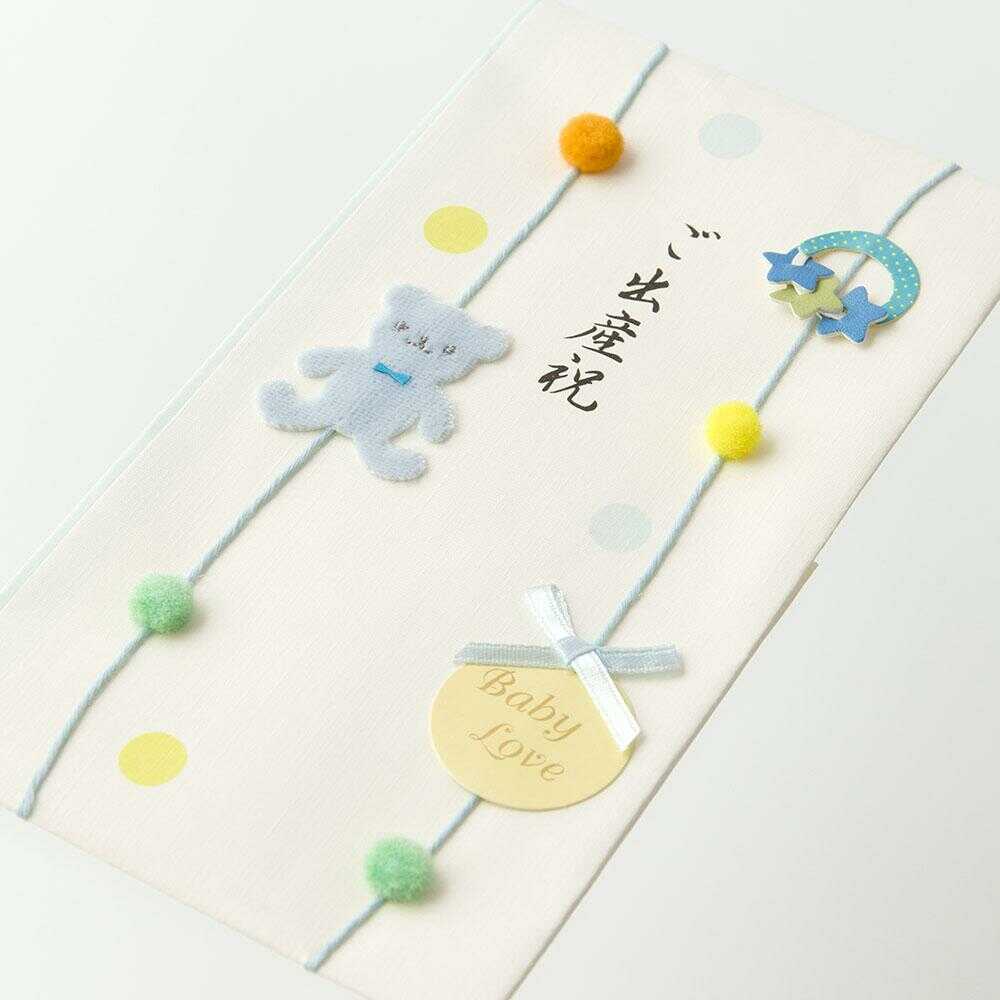 かわいらしいモチーフがたくさん付いた、やさしい雰囲気の金封です。