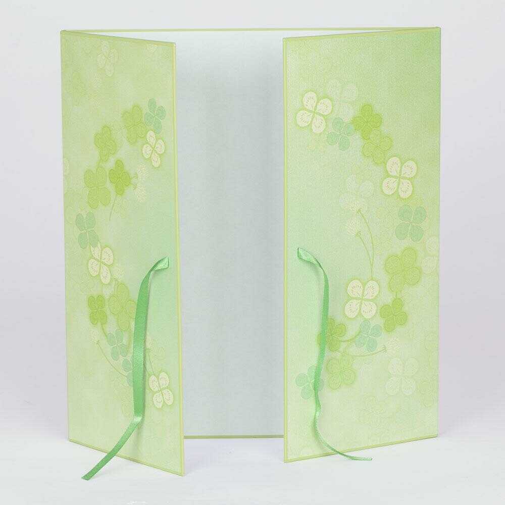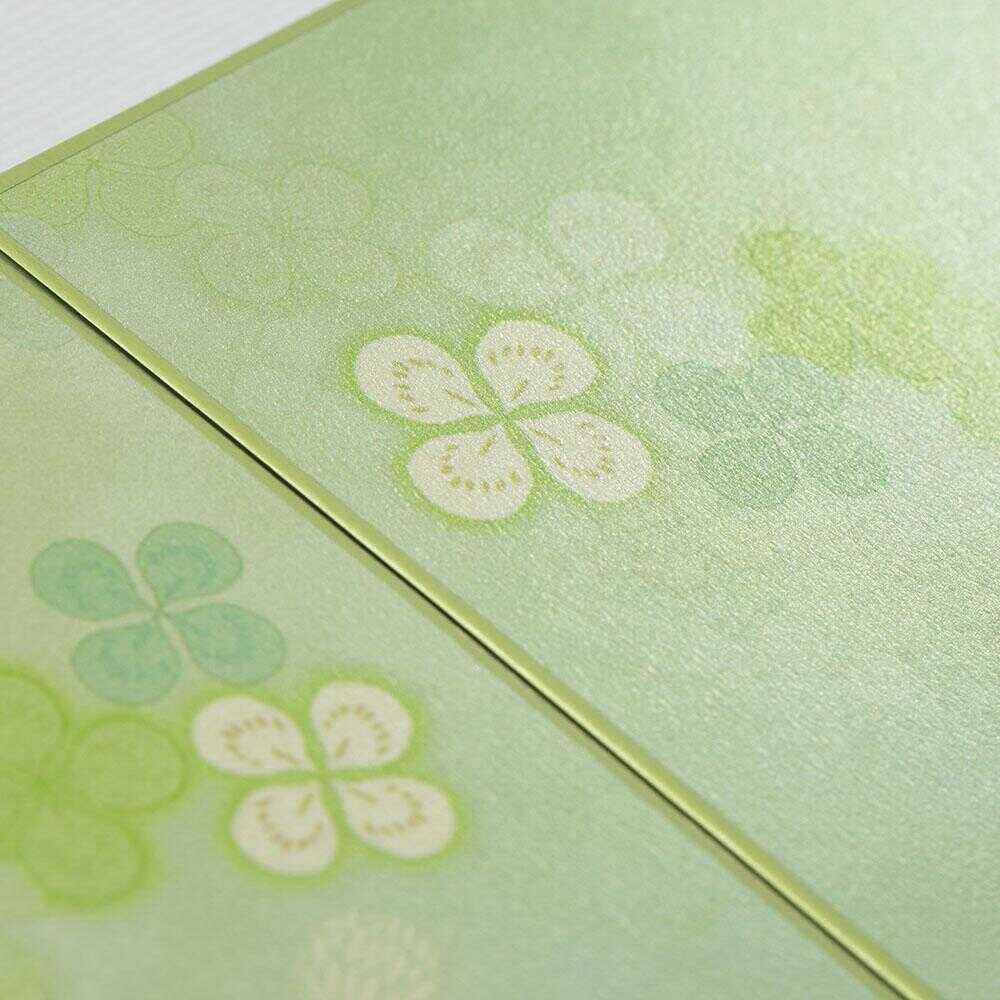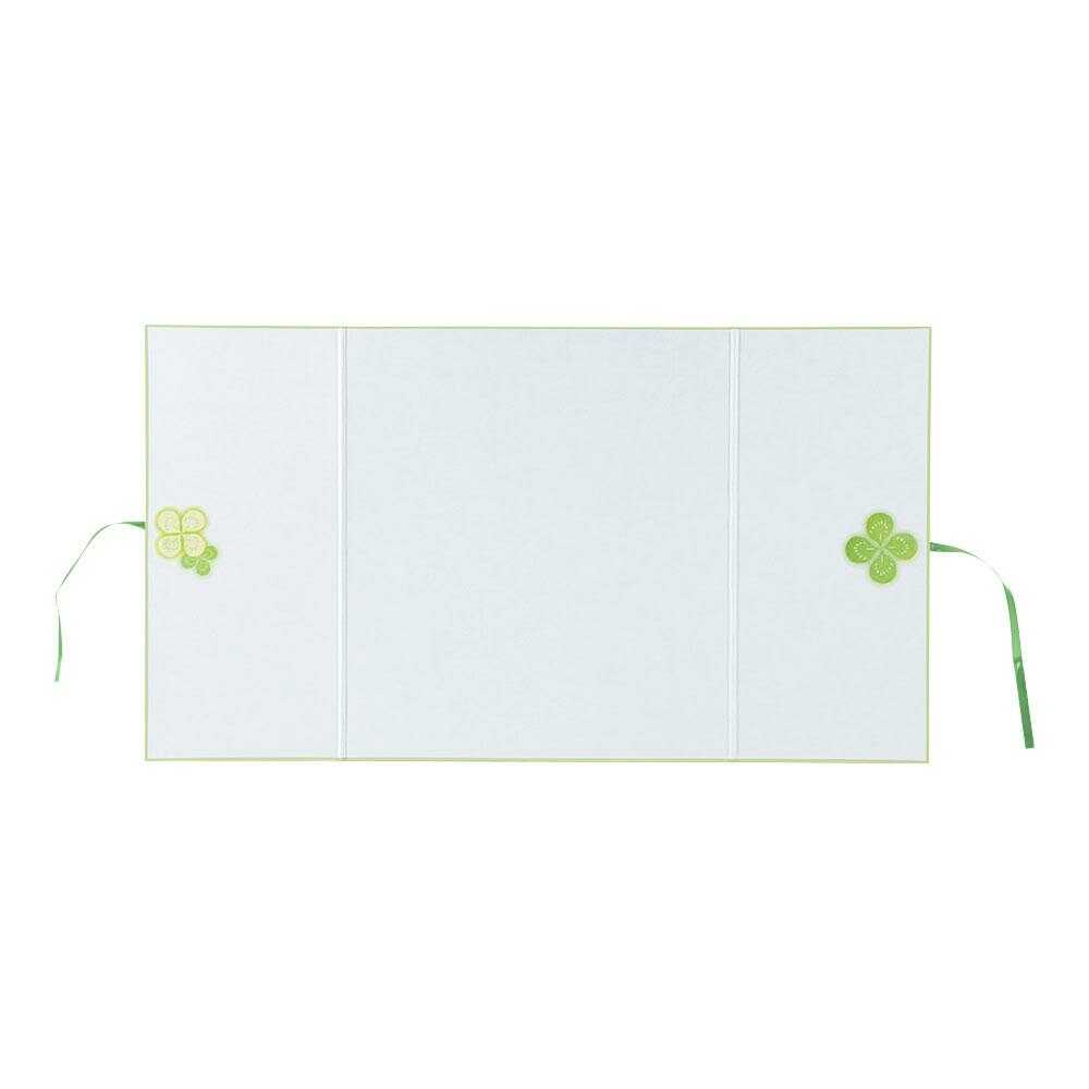 ラッキーモチーフとして知られる四つ葉のクローバーをデザインした色紙です。 かわいいリボンを結んでそのまま贈ることができます。 開くと一般的な色紙の2倍のスペースで、たっぷり寄せ書きを書いたり、写真やシールを貼ったりと自由にお使いいただけます。