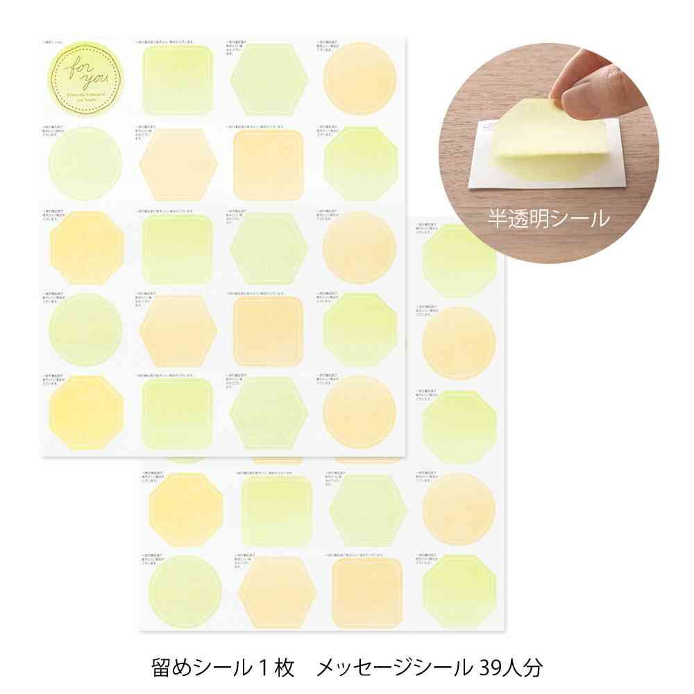 人気の二つ折りタイプに半透明シール39枚がセットになった大人数対応の色紙です。 色紙の表紙にもタイトルやメッセージが書き込めて、お渡し用の封筒まで付いているので、感謝の気持ちをきちんと伝えるのにふさわしい色紙です。 ●シール(金箔押し)/記入用39枚入、留めシール1枚入 ※筆記具は細い油性ペンをおすすめします<推奨インクカラー: 黒>
