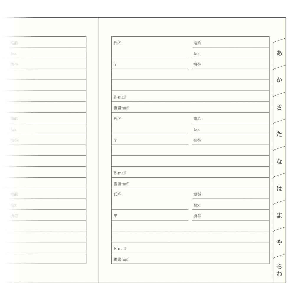 あ/か/さ行のページが多く、太罫で書きやすく見やすい、長期保存に適した中性紙を使用した住所録です。 ●表紙/布クロス貼り 本文/96ページ:うち常用8ページ(1ページ3件分/合計288件分) 仕様/糸かがり綴じ