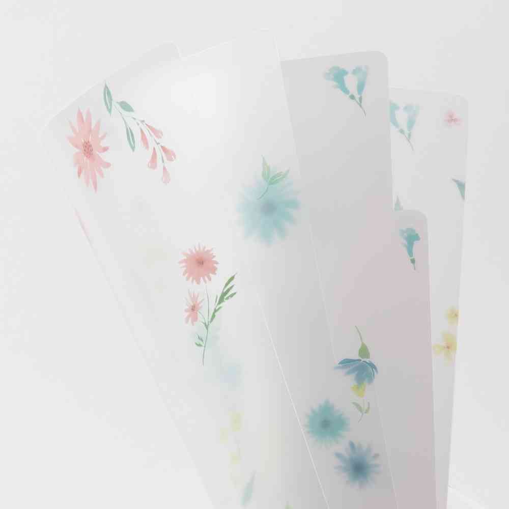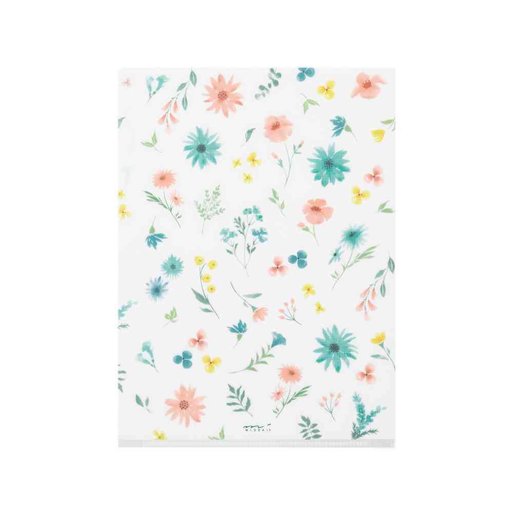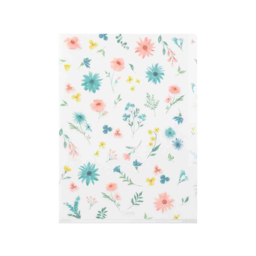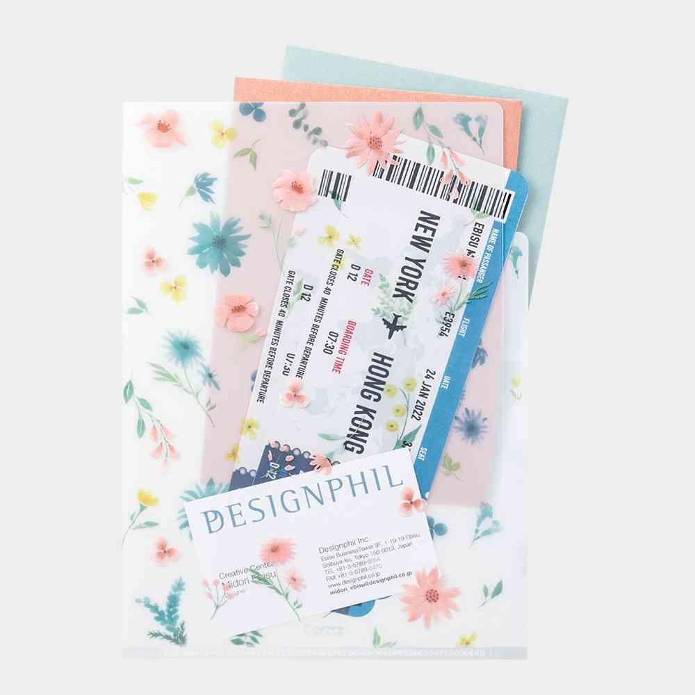 用途ごとに書類をざっくり仕分けられる3ポケット仕様のクリアホルダーです。 大きめのチケットやパンフレット類の収納にも便利。 持ち歩きやすいA5サイズです。 重ねることで淡い水彩タッチの花々が重なり合う、華やかなデザインです。