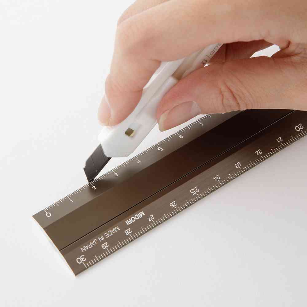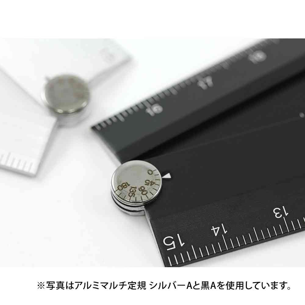 使用時には30cm、使わない時には二つ折りにたたんで、胸ポケットやペンケースに収納が可能なロングセラー「マルチ定規」の軽くて丈夫なアルミ素材タイプ。 カッターを使った作業にもおすすめです。 中心軸には角度表示があり、15度ごとの角度測定機能もついています。 シンプルで使いやすさにこだわった日本製の定規です。