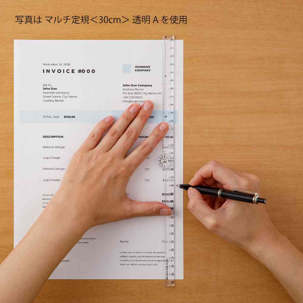 開くと30cmまで測れて、折りたためばペンケースの中に収まりるコンパクトな定規。 高さや奥行きが測りやすいグランドポイントの目盛り付き。 15度ごとにカチッととまり、角度も測れます。 1cmごとに穴があいているので、等間隔で印をつけるのにも便利。マルチに活躍する定規です。