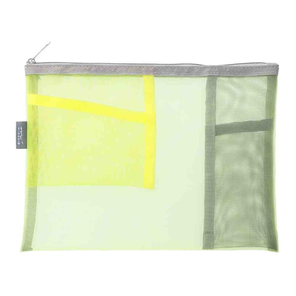 色と形の違う2つの内ポケットがついたメッシュポーチです。 収納する物のサイズによってポケットの大きさがざっくり分かれているので、 細々したものも整理しやすく、一目で中身を把握できて、取り出しやすいです。 文具を入れるポーチとしてだけでなく、化粧ポーチや診察券・お薬手帳入れとして使うのもおすすめです。