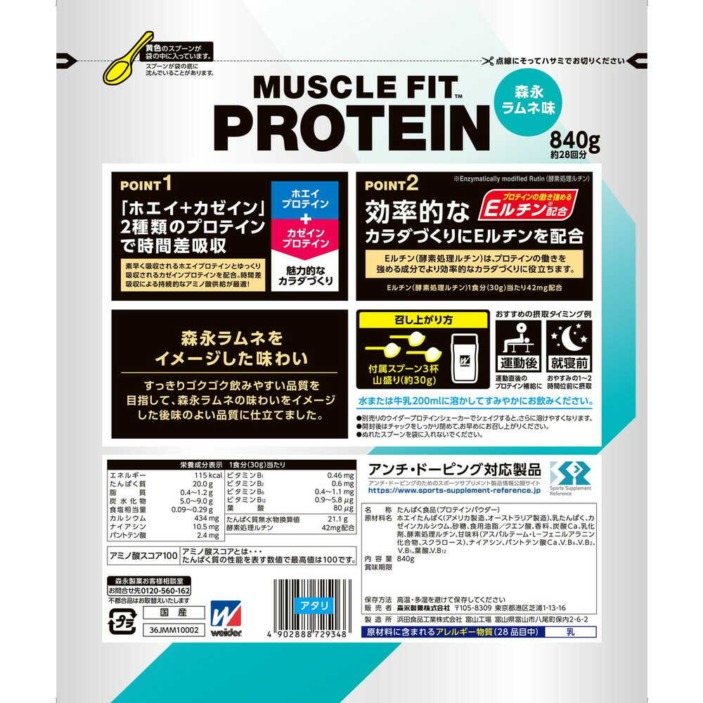 2種混合タンパク質で時間差吸収&プロテインの働きを強めるEルチンを配合した、効率追求型プロテイン。 森永ラムネの味わいをイメージしたおいしく続けやすい本格派プロテインです。 マッスルフィット