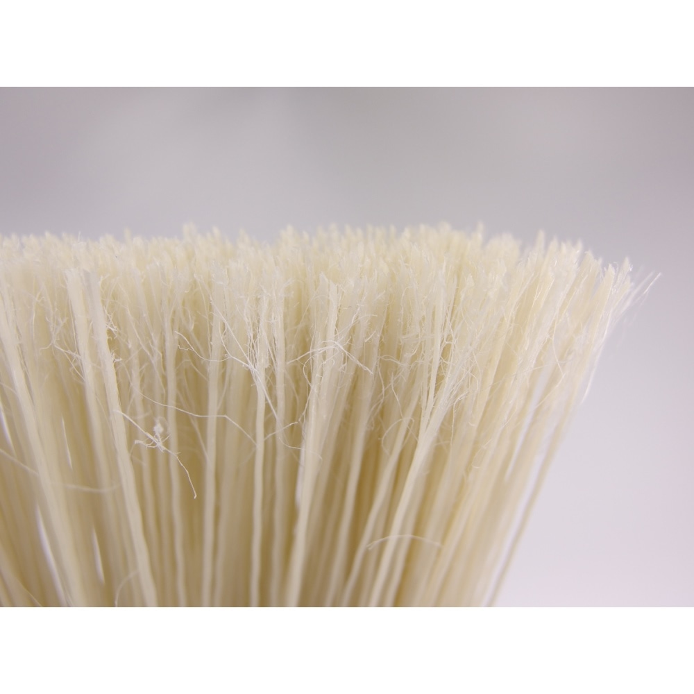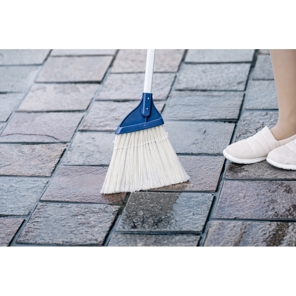 コシが強く水にも強く掃きやすい。植毛加工で 丈夫。 毛先が割れているため細かいゴミもよくとれる。
