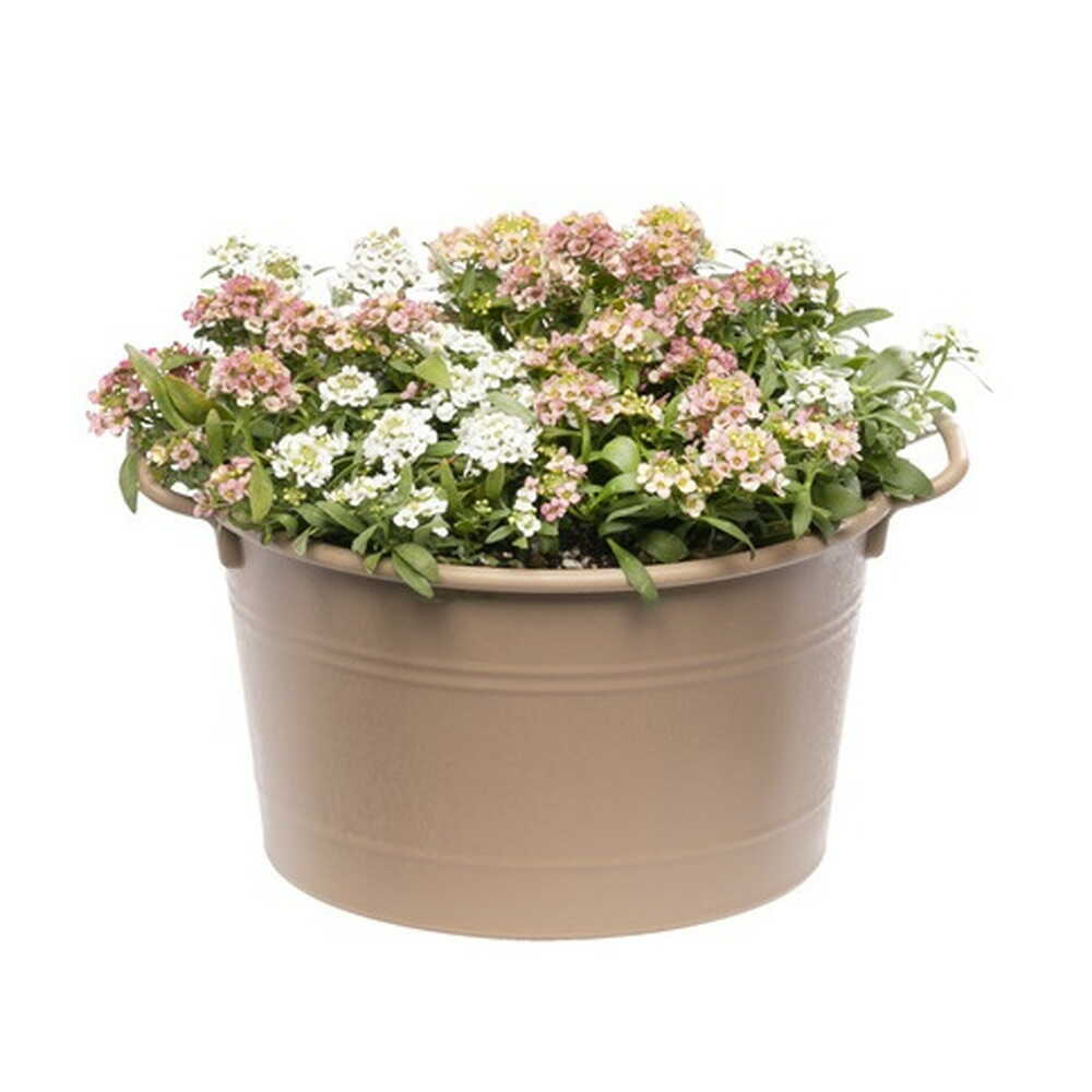 省スペースでの寄せ植えに適した小柄でかわいいブリキ風ポット 【特徴】 ・従来のボールプランターよりも小型に設計しているため、省スペースでも寄せ植えを楽しむことができます。 ・花苗やカラーリーフの寄せ植えに最適な深さ。 ・ブリキライクなデザインでお庭や玄関をおしゃれに演出。 ・植物にも置き場所にもなじみやすい3色展開。