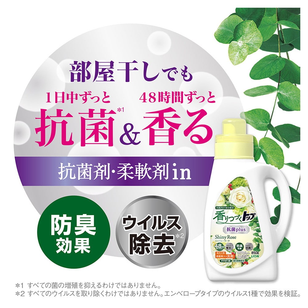 部屋干しでも、イヤなニオイを抑えて、衣類だけでなくお部屋に広がる香りまで楽しめる柔軟剤入り洗剤。当社香りカテゴリー洗剤初の抗菌剤配合で、部屋干しでも1日中ずっと抗菌&ずっと香る。さらに独自の『香りづづくメカニズム』で洗う時から、着る時まで心地よい香りが長続き!植物生まれの柔軟成分配合で、衣類をふっくら仕上げる。天然アロマ成分配合で、清潔感のあるローズ&フローラルの香り。すすぎ1回にも対応。