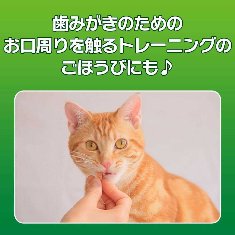愛猫の好きな“ササミジャーキー”が、噛むことで歯みがきできるおやつに。噛むことで歯の汚れ・歯垢を除去。秘密は「ブラッシングスクラブ*」、歯と歯のすき間に入り、噛むことで歯垢を除去。ピロリン酸ナトリウム、ポリリジン配合。国産ササミ使用。