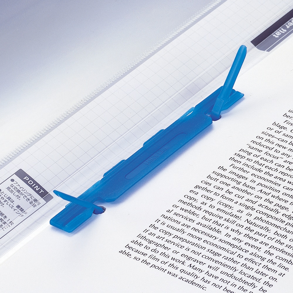 書類が見やすいスイング機構のとじ具。スリムタイプなのにコピー用紙100枚までとじられる、簡単操作の新機構とじ具。0.3mm厚透明P.P.表紙なので、開けずに中の書類が確認できます。