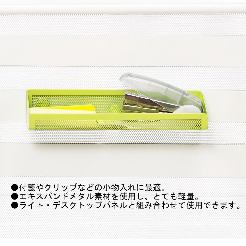 付箋やクリップなどの小物入れに最適。エキスパンドメタル素材を使用し、とても軽量。ライト・デスクトップパネルと組み合わせて使用できます。強力なネオジム磁石を使用。接触部分保護用ゴム付き。(目安保持荷重 200g)