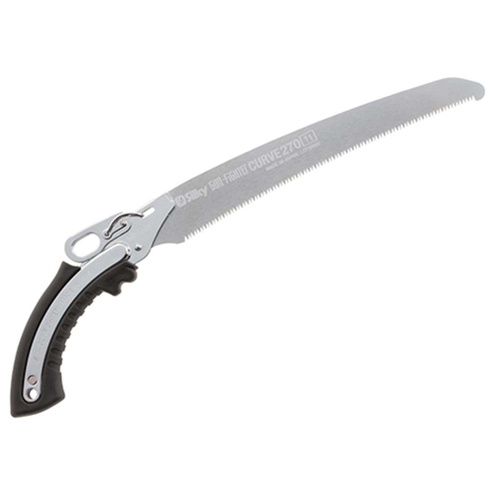 圧倒的切断能力を秘めたカーブソーで、生木剪定をスピーディに行えます。 生木の切断からコンパネ、集成材、竹の切断。 非常に軽い鞘入り鋸で、長時間の作業でも疲労が軽減されます。 鞘に3Dローラーを装備しているので、鋸の出し入れが大変スムーズで、ロック機能で、鋸刃が逆さまになっても抜け落ちません。 替刃がワンタッチで交換でき非常に便利です。 生木も乾燥木材も竹もなんでも切れるオールマイティな鋸です。 刃がカーブしているので、肩から上の剪定や足場が不安定な場所の剪定でも挽くだけでぐいぐい枝に食い込むので、スピーディかつ楽に剪定できます。 ●刃長:270mm。 ●サイズ:収納時450×130×40mm、使用時450×110×17mm。 ●目数:11枚目。 ●切幅:1.2mm。 ●重量:385g。