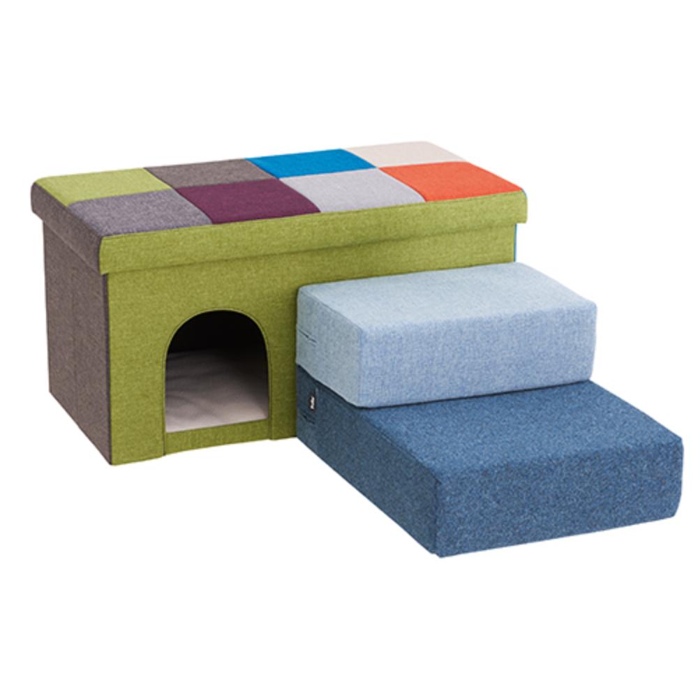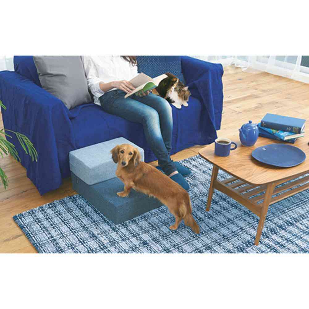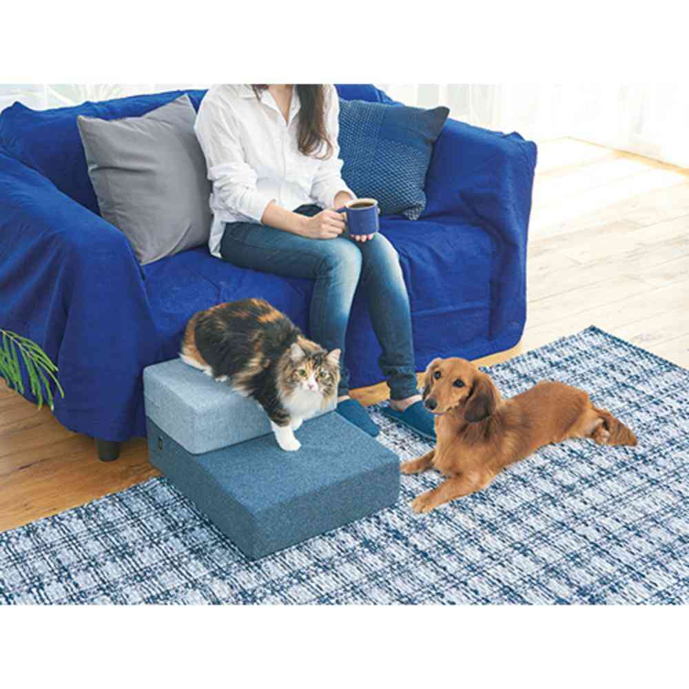 ・段差の上り下りをサポートするステップとしてもマットとしても使える。 ・ゆるやかな傾斜で足の短い犬猫でも上り下りしやすい段差。 ・ウレタンが衝撃を分散して足腰の負担をやわらげる。 ・折りたたむと2段に、組合せで3段ステップにもできて、ソファー・ベッドの横に合わせやすい。 ・スベリ止め付き。
