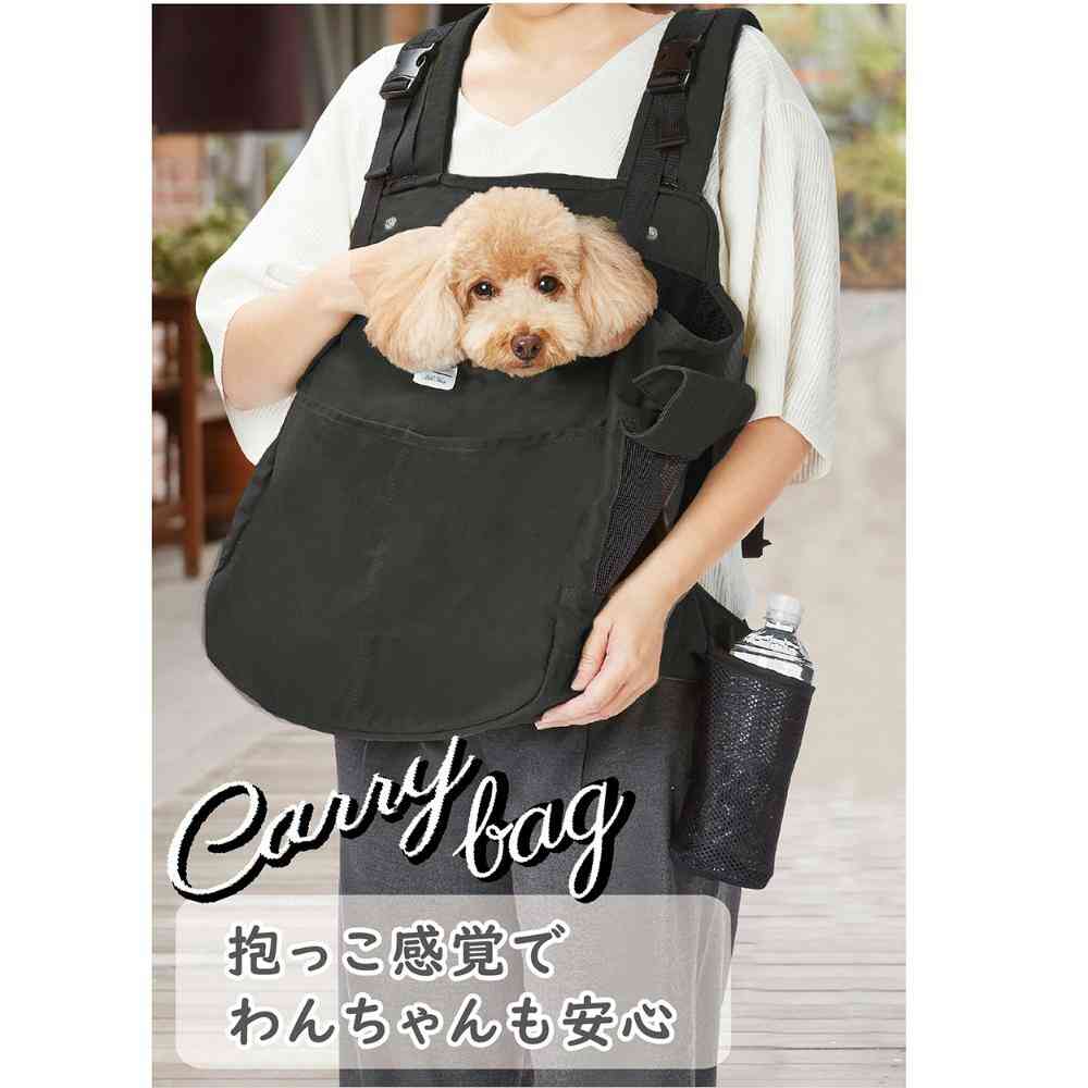 ・抱っこ感覚で使えるキャリーバッグ。 ・底を水平に保つ水平ベルトでお出かけ中もわんちゃん快適。 ・両肩ショルダー仕様で肩への負担がかかりにくく、腰ベルトでしっかり固定できる。 ・キャリーバッグとして使用しない時はウェストポーチ形状で、お散歩中も両手が使えて便利。 ・超小型犬~小型犬向き。 ・腰回り:約~122(cm)※使用する人の腰回りで実測 ・適応体重:~8kg※適応体重以内でも、愛犬の体型によっては使用できない場合があります。