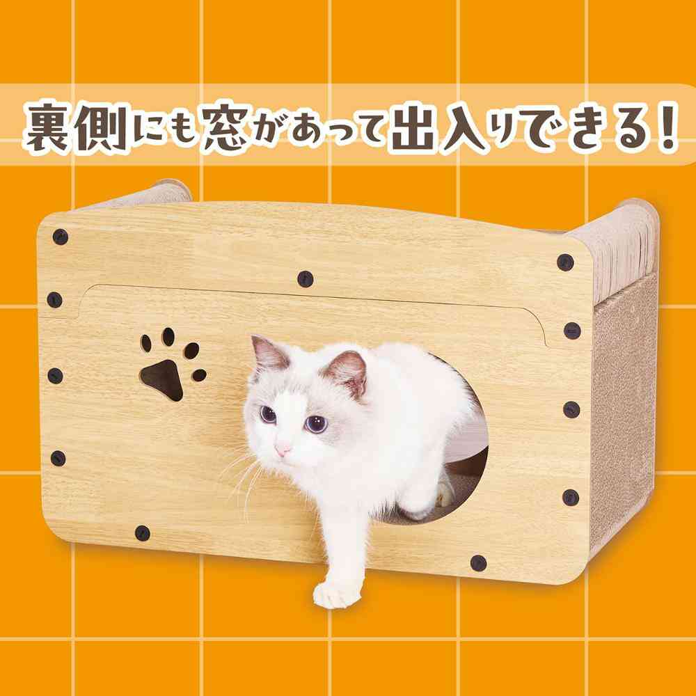 ・研ぎ心地バツグンな段ボールを使用。 ・インテリアに馴染みやすく猫ちゃんの隠れ家に最適な段ボールつめみがきハウス。 ・裏側にも窓があって出入りできる。 ・適応体重:~8kg