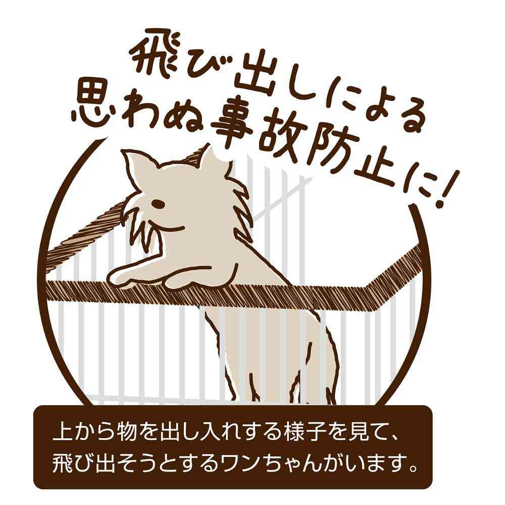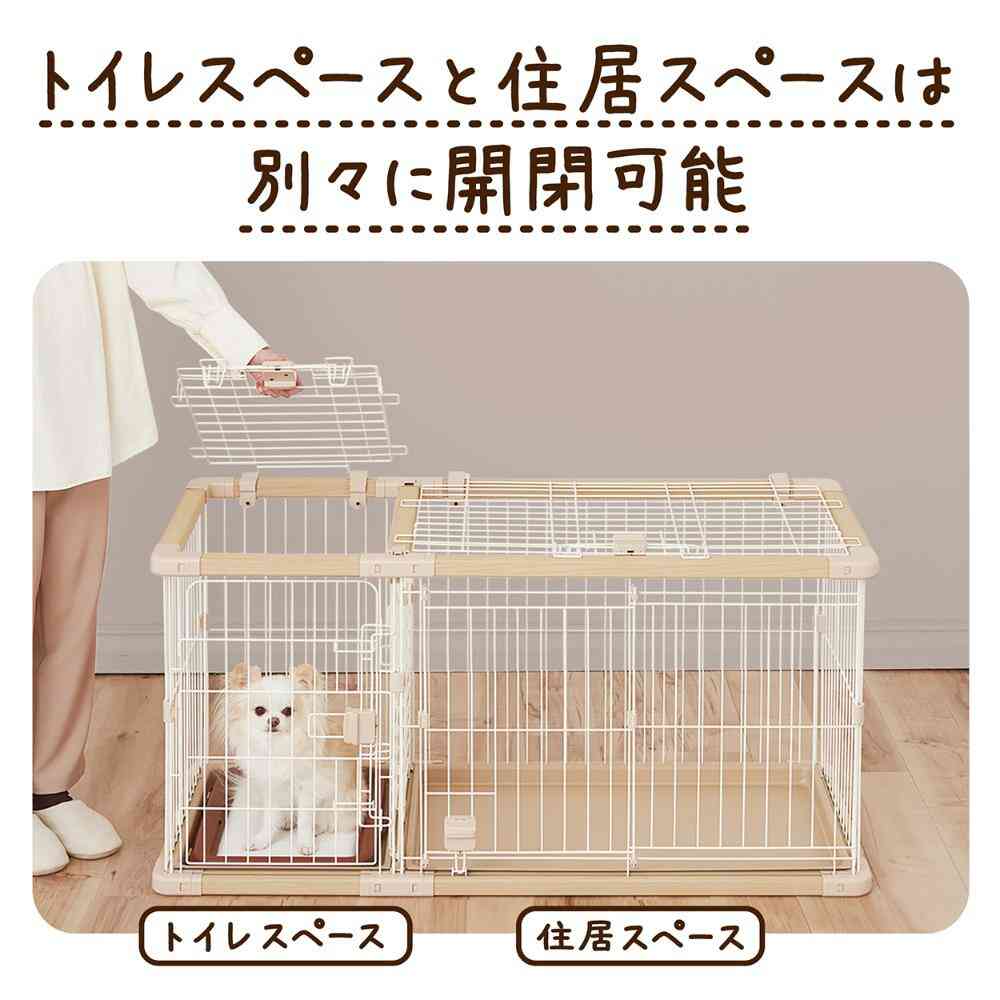 トイレスペース・住居スペースそれぞれが自由に開閉。着脱簡単アタッチメント付。片手で操作できるロック機構。 ・適応種:超小型犬~小型犬