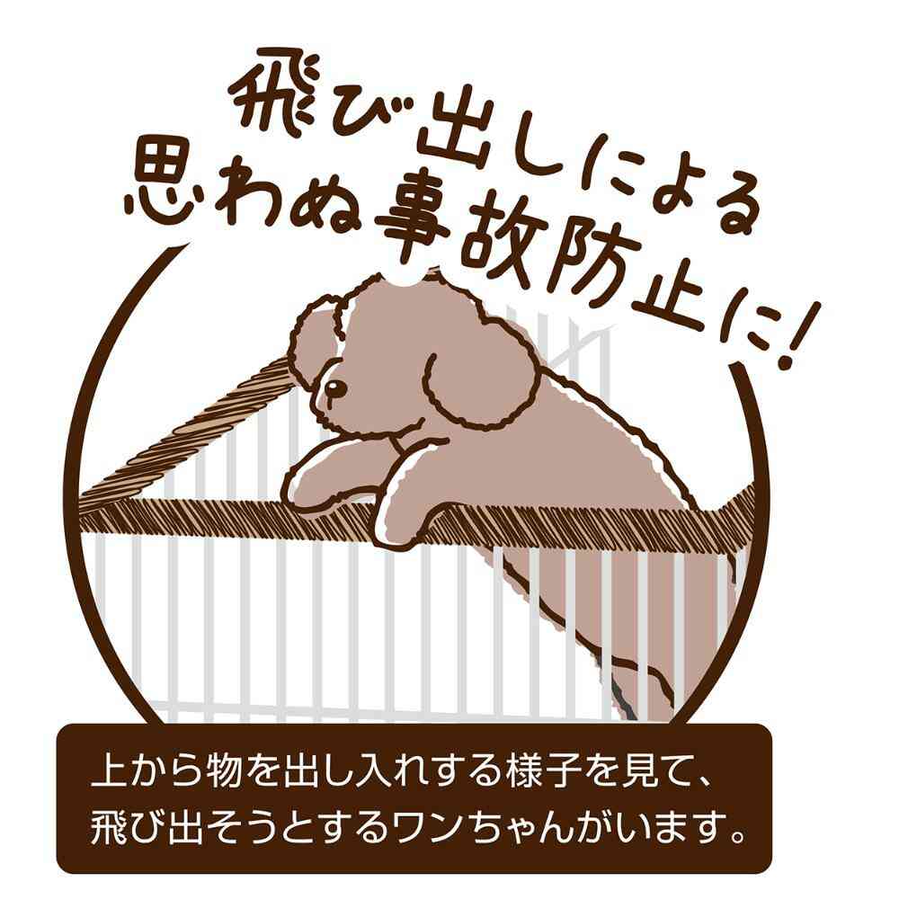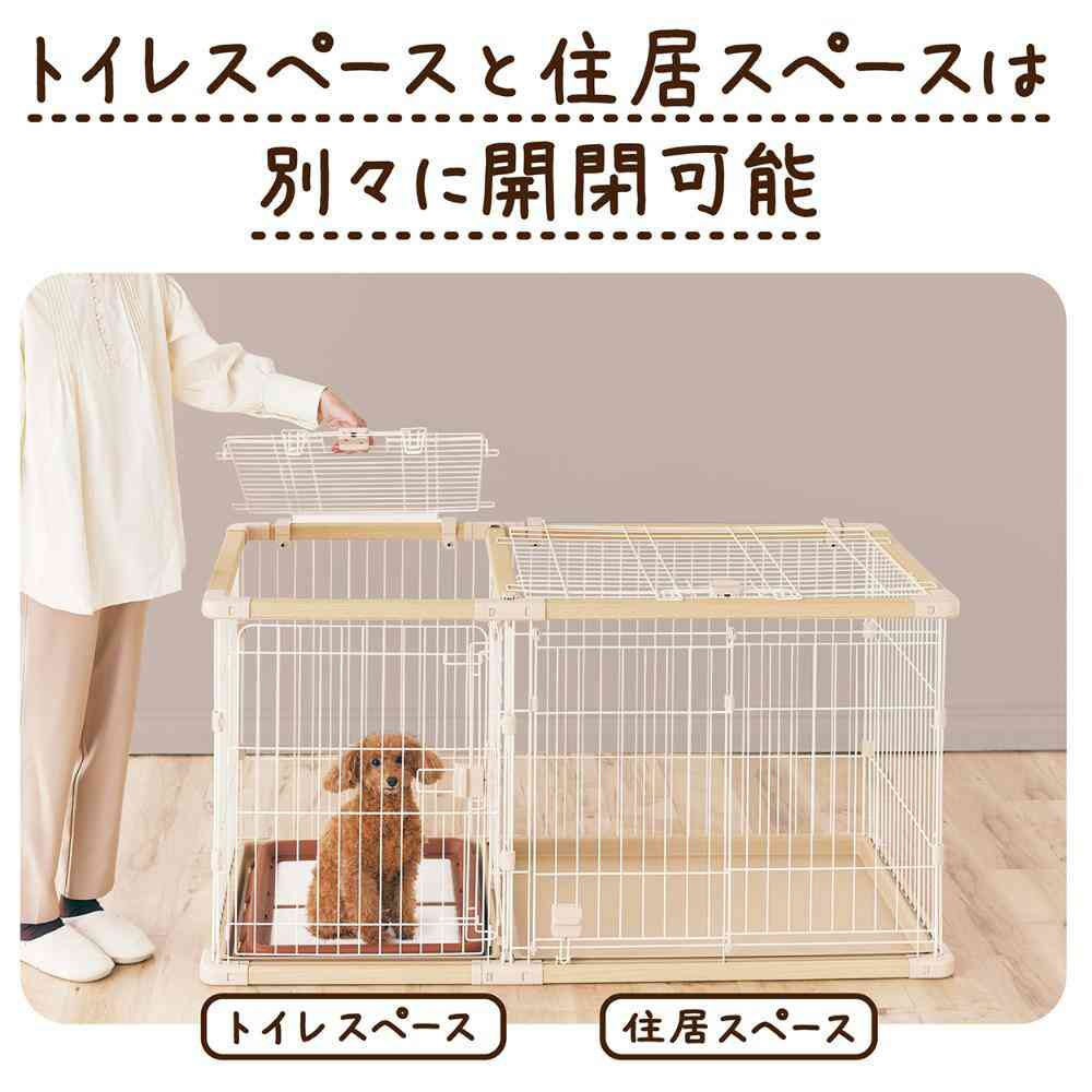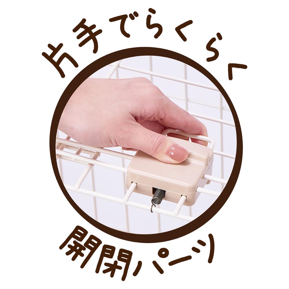 トイレスペース・住居スペースそれぞれが自由に開閉。着脱簡単アタッチメント付。片手で操作できるロック機構。 ・適応種:小型犬~中型犬