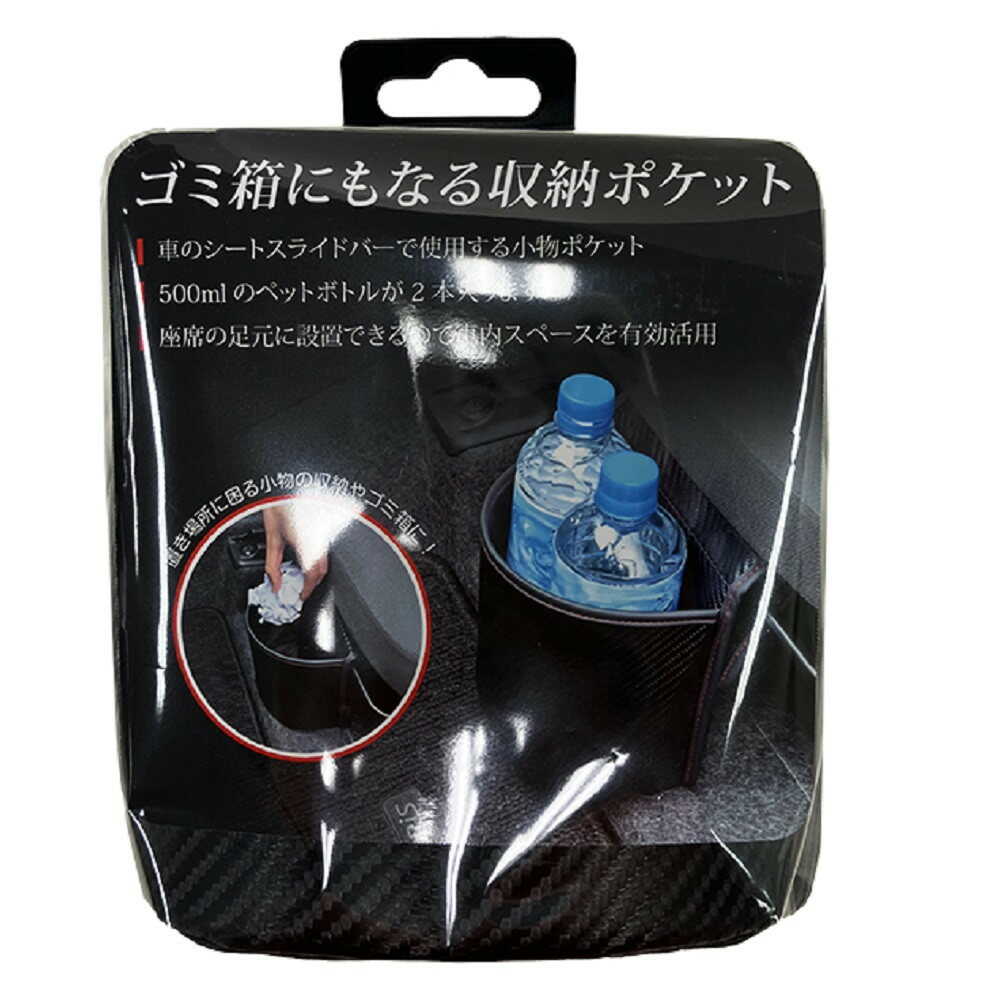 ●車のシートスライドバーやドアポケットで使用する小物ポケットです。 ●500mlのペットボトルが2本入る大きさでちょうどいいサイズ感です。 ●置き場所に困る洗車シートやタオルなど、車内のちょっとした小物を収納できます。 ●席の足元に設置ができるので、車内のスペースを有効活用できます。 ●ビニール袋を使用すれば、ゴミ箱としてもご使用になれます。