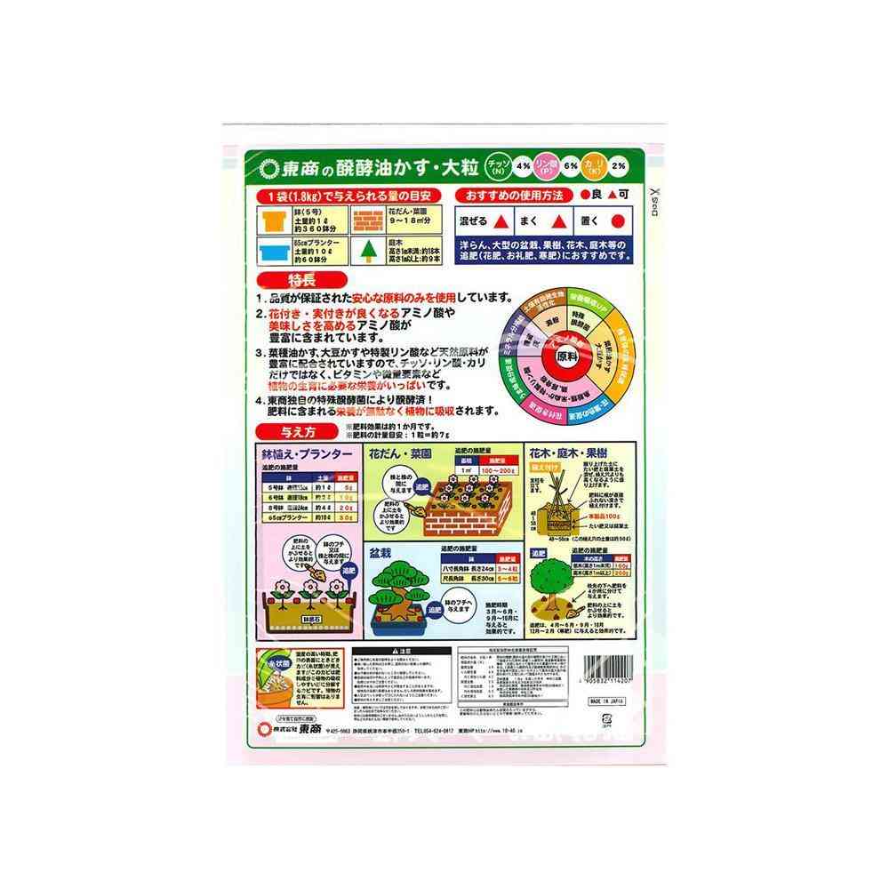 発酵油かす、肥料、園芸、植物、ガーデニング、家庭菜園、庭、ベランダ、栽培、育苗、収穫、花、野菜、家庭用