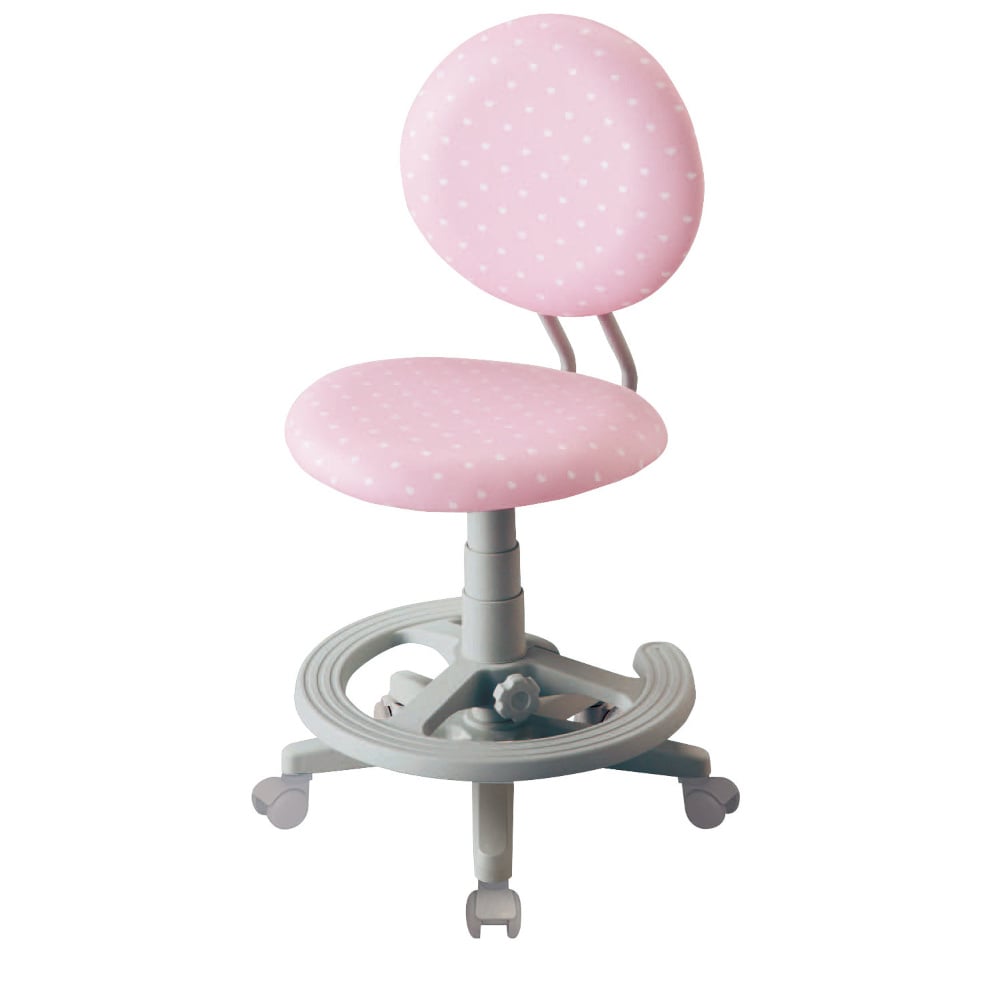 背もたれカバーと昇降レバーはハート型。張地にもハート柄をあしらったかわいらしい回転チェアです。