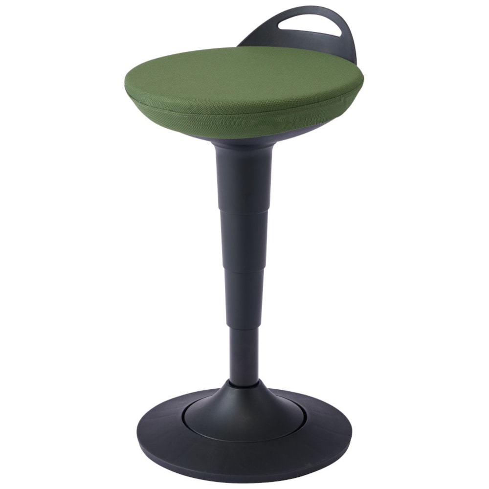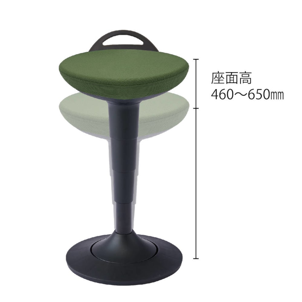 昇降デスクに最適な座面高を調節できるスツール。座面がスイングするので中腰の姿勢にも対応できます。