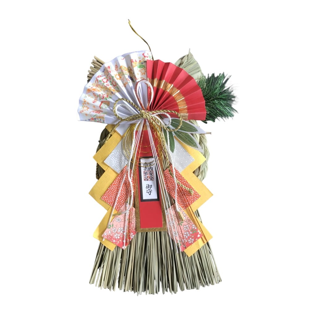 ●当商品は、素材同士の結合部分に針金(地巻線)を使用しております。商品加工時には充分注意しておりますが、パッケージから取り出し、飾付けの際には手や指に当り、怪我をする恐れがありますのでご注意ください。●燃えやすい素材を使用していますので、火気から2メートル以上離した場所に飾るようにしてください。●車のエンジンルームや機械類などの高温になるような場所には飾らないでください。●自動車、オートバイ、自転車などの車輪に引っかかるような場所には飾らないようにしてください。●多湿な場所での長期保管はカビや虫の発生をまねきます。ご注意ください。●水に濡れると色落ちする場合がありますのでご注意ください。●どんど焼きの際にはプラスティック、針金を外してからお出しください。●吸盤は付きにくい場合があります。付きにくい場合は内側を水にぬらすか、暖めてから中の空気を抜くようにして取り付けてください。