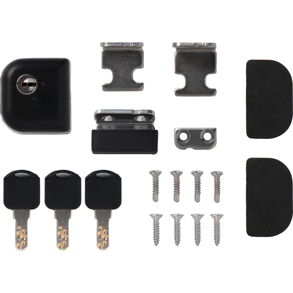 ●補助錠本体:アルミダイカスト(塗装仕上)、ディンプルキ―:真鍮(ニッケルメッキ仕上)、スペーサー:ステンレス、取付金具:ステンレス、取付ネジ:ステンレス