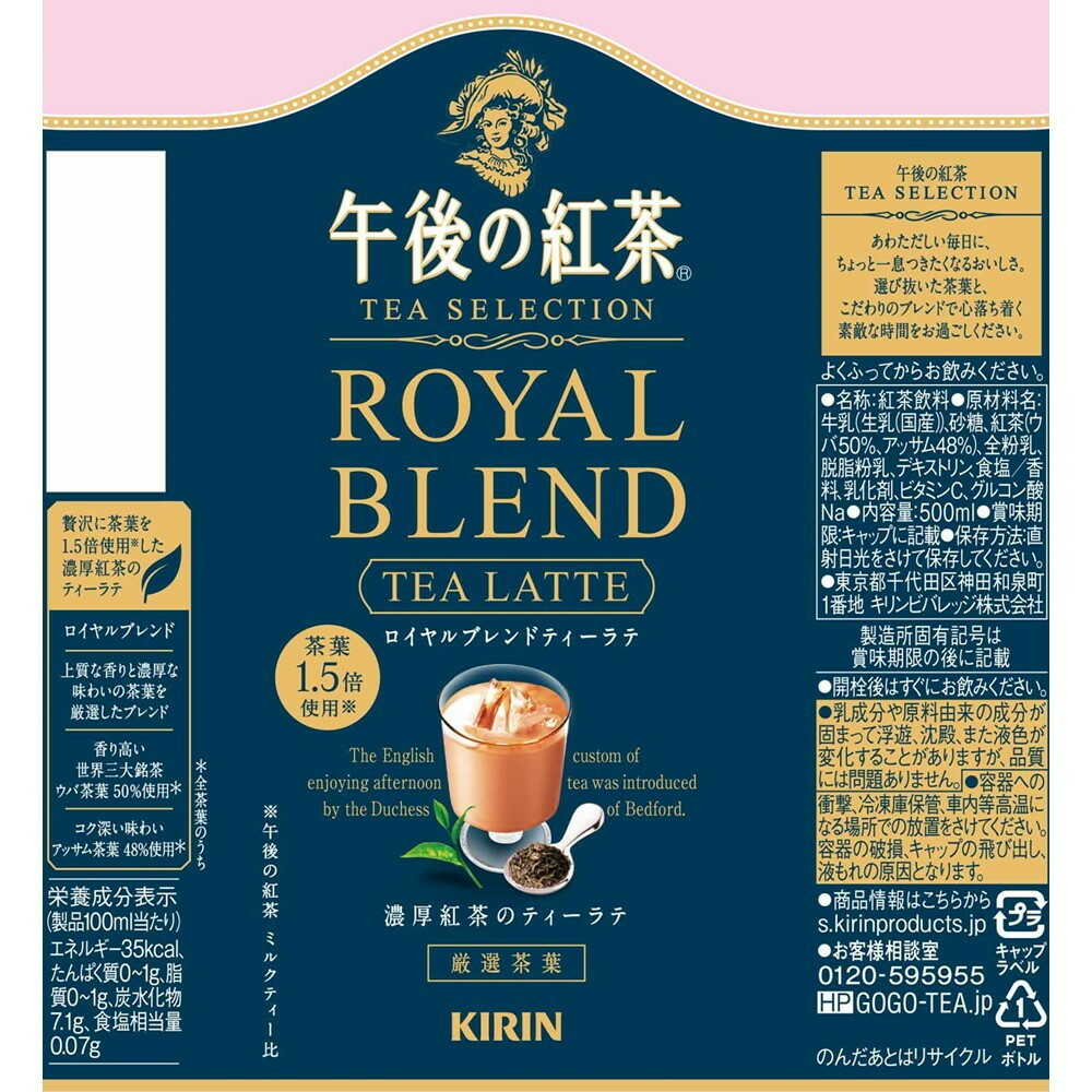●「キリン 午後の紅茶 TEA SELECTION ロイヤルブレンドティーラテ」は、贅沢に茶葉を1.5倍使用した濃厚な本格ミルクティー※午後の紅茶 ミルクティー比。 ●上質な香りのウバ茶葉(※48%)とコク深いアッサム茶葉(※50%)の濃厚で香り高い紅茶の味わいが楽しめるティーラテ。※茶葉全体のうちに占める割合 ●ちょっと上質でちょっといい休息を。大人の心を満たす、こだわりの紅茶。 ●午後の紅茶ティーセレクションシリーズをお楽しみください。 ●500ml ペットボトル 紅茶 ペットボトル カフェラテ カフェオレ ラテをお探しの方におすすめ