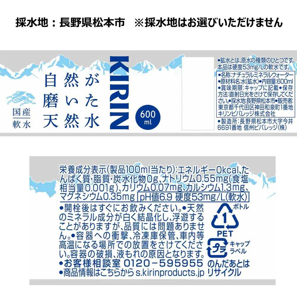 「キリン自然が磨いた天然水」は、日本の大自然で育まれたおいしい国産の天然水。 やわらかな飲み口でゴクゴクと飲みやすい軟水。 大容量600mlサイズ。 軟水だから、赤ちゃん用の粉ミルクや離乳食を作るときにも便利。 賞味期限は2年と長期保存可能で、災害時・防災用の備蓄にもぴったり。 毎日の生活の中で使いやすいお水、ぜひお試しください。