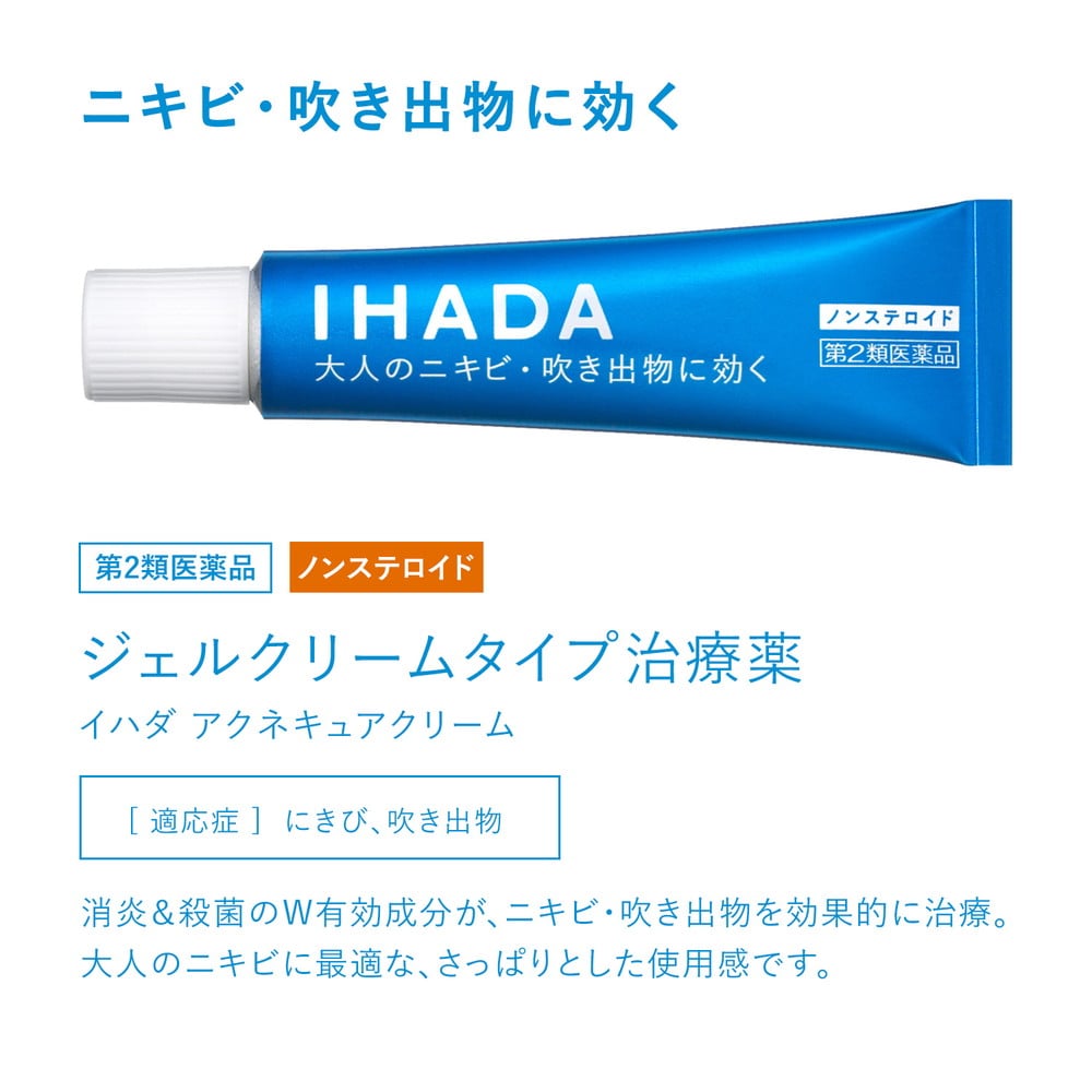 ・患部を清潔にした上でお薬を使用しましょう! ・日頃からお肌をキレイにすることはもちろんですが、お肌に触れる衣類やタオルなども清潔なものを使用するよう気をつけましょう。 ・糖質・脂質の多い食事を控え、睡眠を充分にとり体の中からもお肌のコンディションを整えましょう。 ・お子様に使用する際は、保護者の方が肌の状態をよく観察してご使用下さい。 ・1ヶ月くらい使用しても症状の改善が見られない場合は使用を中止し、医師・薬剤師・登録販売者にご相談下さい。 ・使用前に、よく添付文書をお読みになってからご使用下さい。その際、ご不明な点がございましたら、薬剤師・登録販売者にご相談下さい。商品説明ニキビの炎症を鎮める成分イブプロフェンピコノールと殺菌成分イソプロピルメチルフェノールの2つの医薬品有効成分配合により、ニキビ、吹き出物に効きます。 弱酸性、ノンアルコール設計です。 油分を最小限にすることで上からのメークがよれない、くずれない、大人のニキビにさっぱりとした使用感と薬効感のあるさわやかなグリーンティの香りを実現したジェルクリームタイプの治療薬です。
