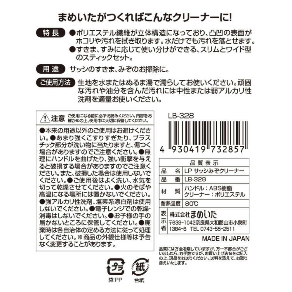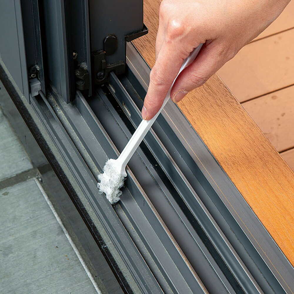 サッシの溝やすきまに入り水だけでも洗えるポリエステル繊維のクリーナー。