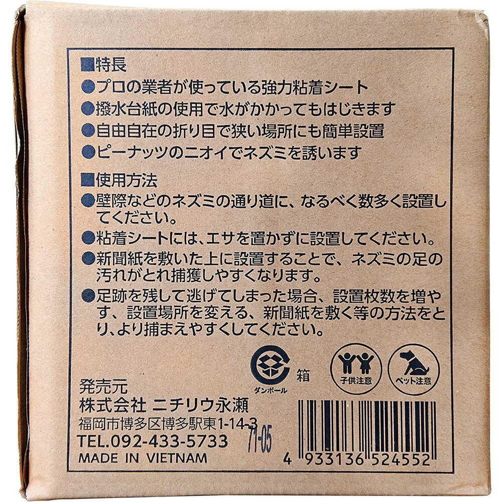 プロの業者が使っている強力粘着シート 【特徴】 ・撥水台紙を使用しているので水がかかってもはじきます ・自由自在の折り目がついて狭い場所にも簡単に設置できます ・ピーナッツのニオイでネズミを誘います(特に幼獣を誘います) ・エサ不要