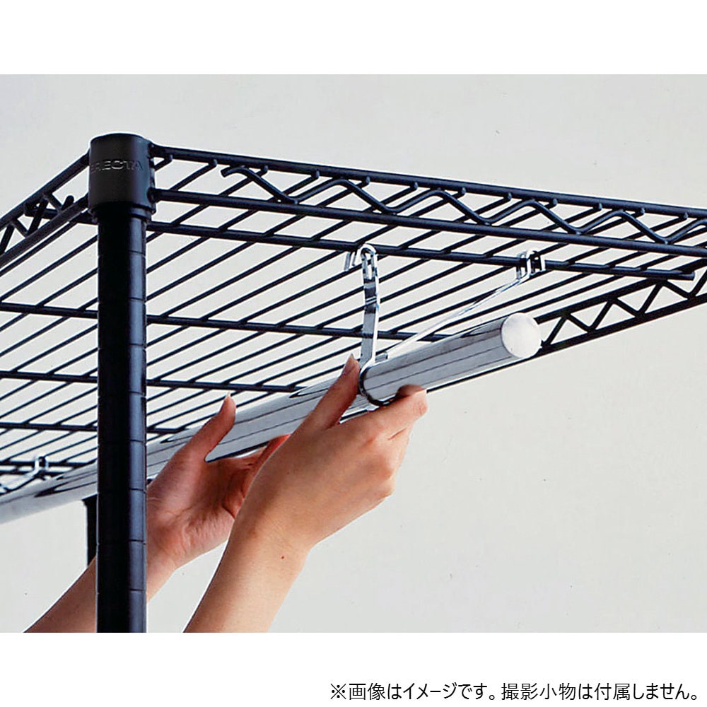ワードローブの必需品。ワイヤーシェルフに取り付けられるステンレス製ハンガーパイプ。【仕様】耐荷重:30kg●●互換性:スーパーシリーズ等、他のシリーズとの互換性はありません。