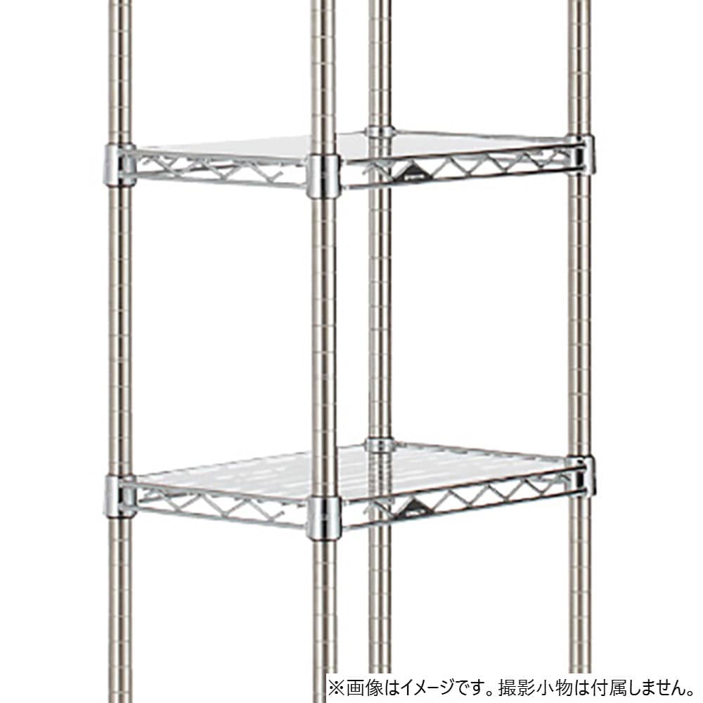 ※アクリル板は必ずワイヤーシェルフの上に載せてご使用ください。その場合、耐荷重(135kg/棚1段)は変わりません。※ディバイダーとの併用はできません。※ゴム・樹脂製品を載せて長期ご使用になる場合は、変色することがあります。※W1500mm のみ間口中央で分割された2 枚入りとなります。