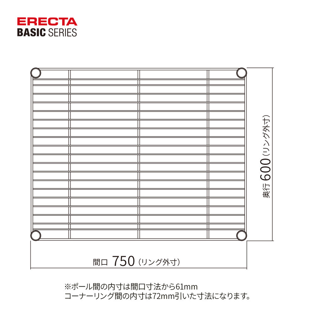 時代の変化にも揺るがないベーシックライン。高度な溶接技術により精度を高め、寸法安定性に優れます。 汎用性の高いパーツを用意し、万能型シェルフとして様々な用途に対応。棚1段あたり135kgの耐荷重。線材の切断面に面取り加工を施し、安全性に配慮。 間口1500mm、奥行450mm、600mmのワイヤーシェルフには補強用スネークが入ります。サビに強い仕上げ。クロームにはクリアコーティング仕上げを、ブラック・ホワイトにはエポキシコーティング仕上げ(粉体塗装)を施しているため、サビに強く衛生的です。【仕様】耐荷重:135kg/棚1段 垂直荷重(等分布)●互換性:同一サイズのユニット内で、下記の棚板との併用が可能です。・ベーシックシリーズ ウッドシェルフ・ベーシックシリーズ スライディングシェルフ/ 3 方クロスバー/アクリル板・ベーシックシリーズヴィンテージエディションスーパーシリーズ、ファーストシリーズ等、他のシリーズとの互換性はありません。
