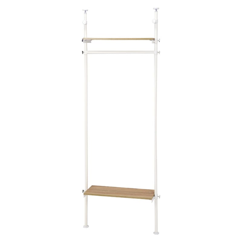 棚板とハンガーバーは無段階に高さ調節可能。スッキリ収納できるつっぱりハンガーラック。