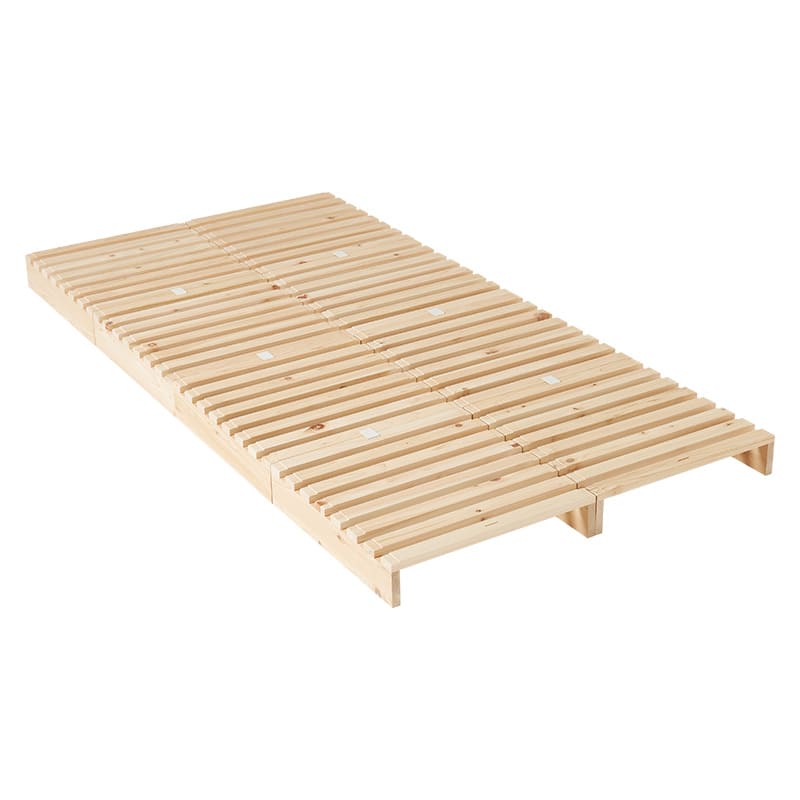 檜(ひのき)の香りや風合いを感じられるすのこベッド。パレット状のすのこ板を並べるだけの簡単設置で移動や模様替えも楽々。