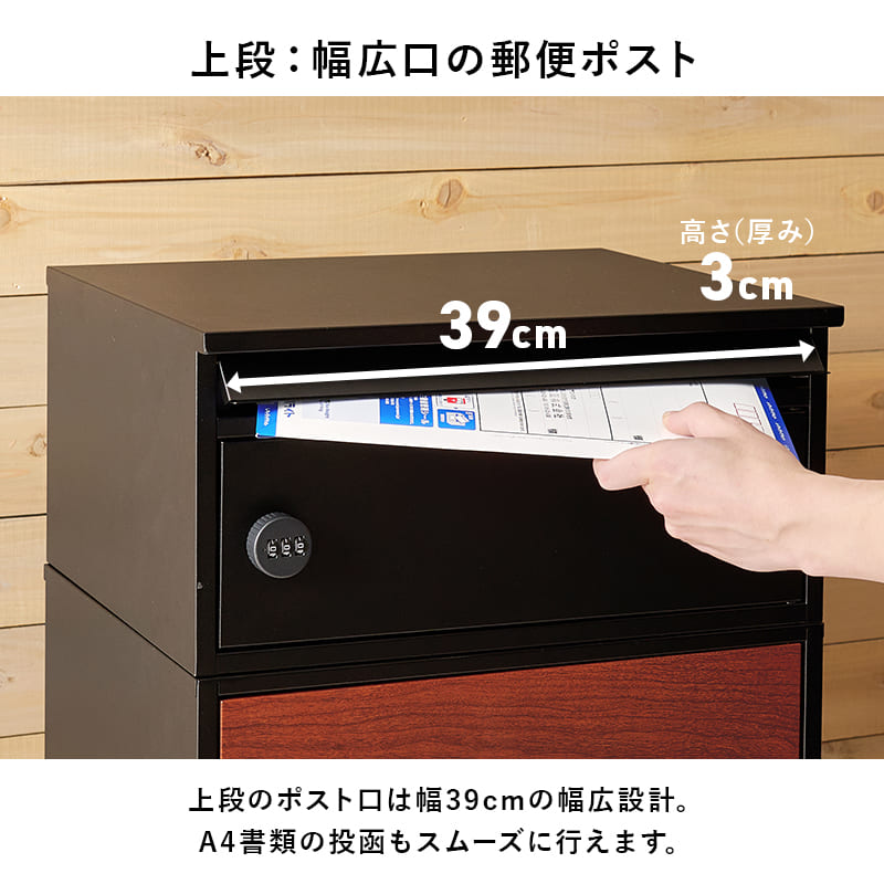 荷物受け取りのストレスを解消。A4サイズの書類の受け取りが多い方や水などの定期購入をされている方にもおすすめのサイズ。