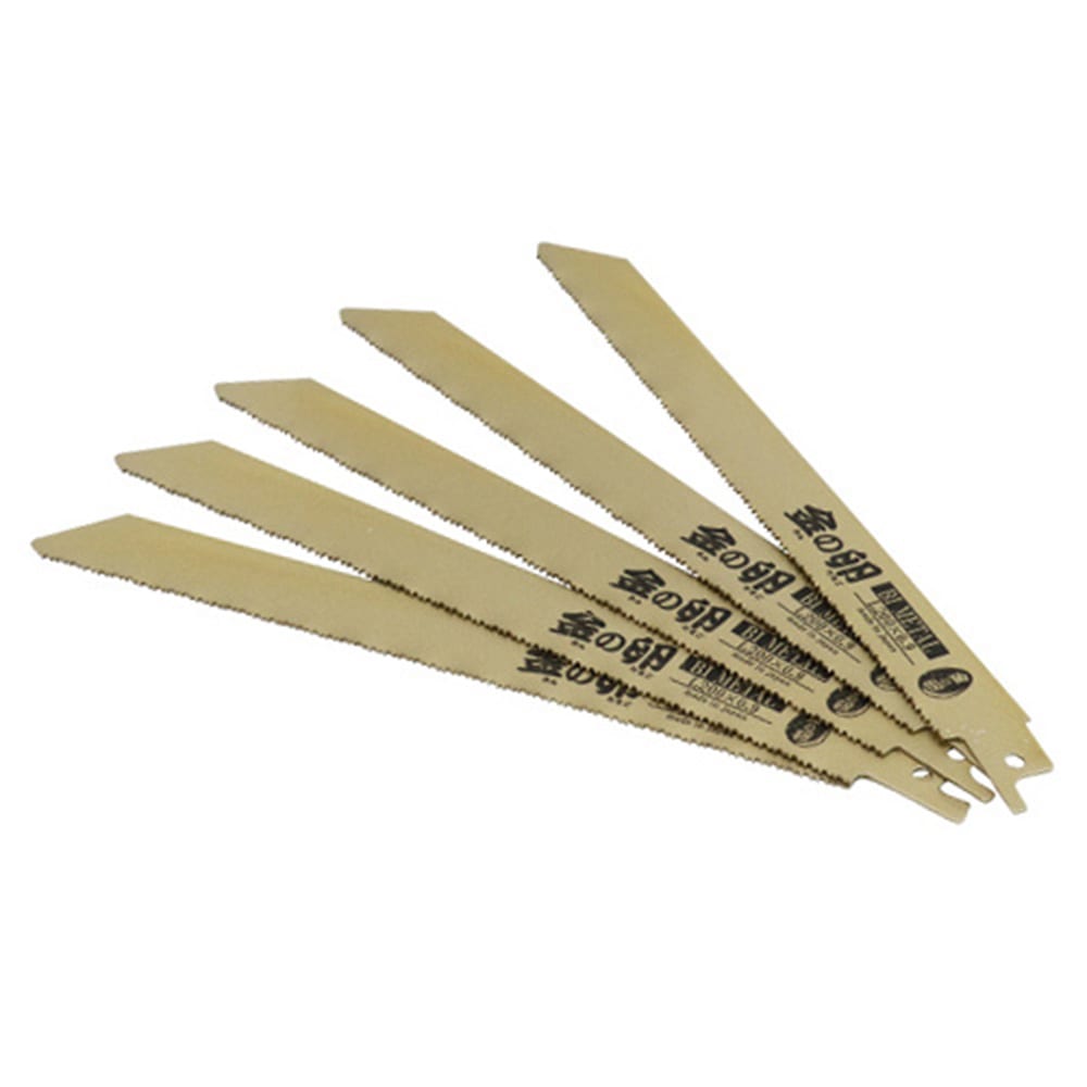 ブレードタイプとなった、瞬速切断が可能なセーバーソー・レシプロソー用の新しい金の卵です。 軟鋼・ステンレス・パイプ・鉄板・非金属・合成樹脂の切断。 バイメタル素材を使用し、刃先にはコバルトハイスを採用している為、摩耗に強いブレードです。 刃先の配列にもこだわり、瞬速切断を可能にしております。 柔軟性に富んだスプリングスチールを採用する事で、折れにくく長寿命なブレードを実現しております。 切粉の排出が良く、振動が少ないため刃先のカケが軽減されます。 ピッチを選ばないコンビネーションフリータイプとなっており、多種多様の部材に対し性能を発揮致します。 ●全長:200mm。 ●厚み:0.9mm。 ●幅:19mm。 ●適用:4mm以下の軟鋼・ステンレス・パイプ・鉄板・非金属・合成樹脂。 ●切断有効長さ:120mm。 ●入数:5本。